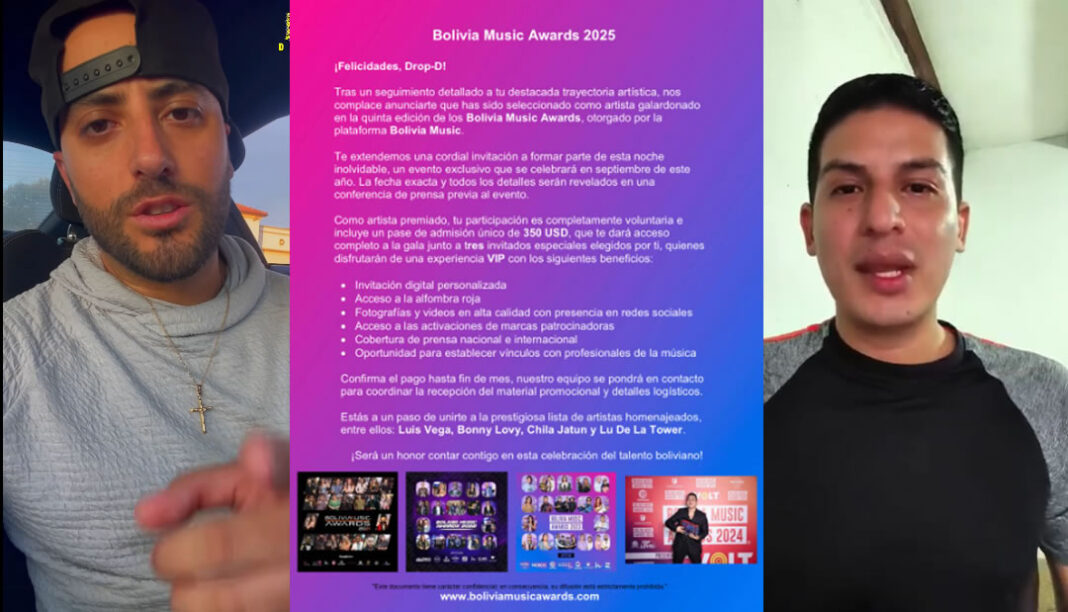 Todo comenzó con una publicación del cantante Drop-D, radicado en Estados Unidos, quien denunció en sus redes sociales haber recibido una “invitación” a los premios que incluía un cobro de 350 dólares. “Ni los Grammys cobran para hacer entrar”, escribió el artista, calificando el evento como “premios basura” y cuestionando la legitimidad de la organización. Además, señaló que en el pasado intentó conseguir apoyo para promocionar su música a través de la plataforma, pero fue ignorado o se le pidió un pago adicional para ser incluido en el ranking.
