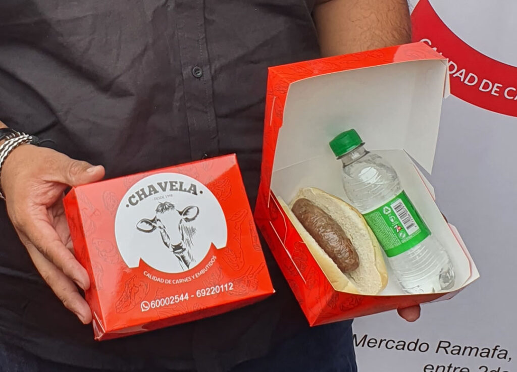Como parte de las promociones festivas, Carnicería Chavela ofrece un combo especial: un choripán acompañado de una soda pequeña por Bs 10, disponible exclusivamente durante estos tres días del festival.
