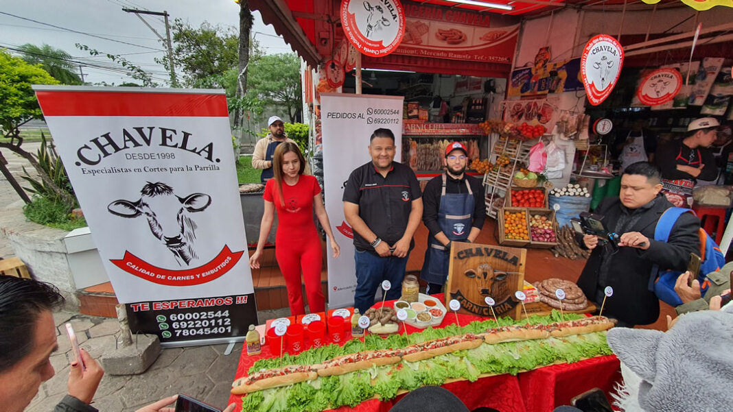 Uno de los momentos más llamativos de la conferencia fue la presentación del choripán más grande de Santa Cruz, preparado con chorizos Chavela, pan francés recién hecho, salsa pico de gallo y salsa golf, acompañado de la tradicional yuca.